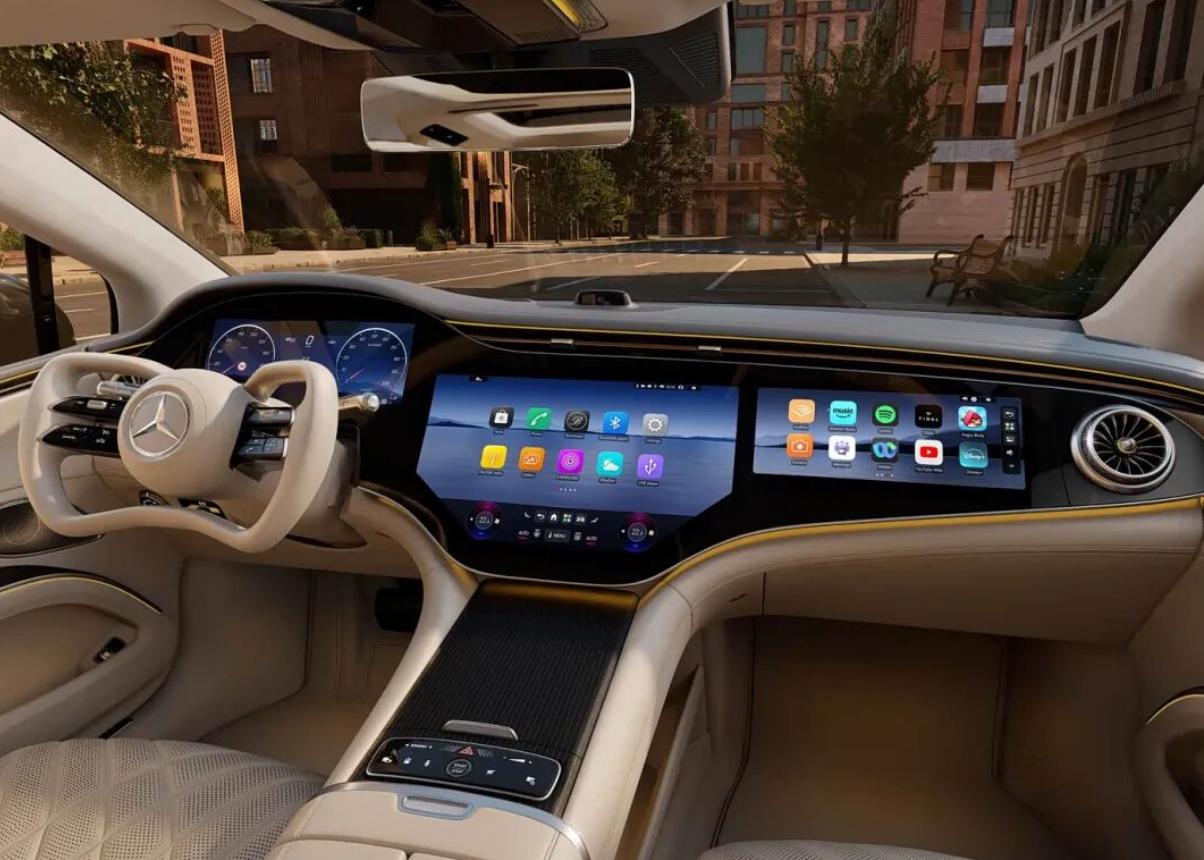 内饰方面,使用了一块横贯左右的55英寸MBUX超联屏和MB.OS操作系统,还有一个独特的半幅方向盘和能预判路况主动调节的AIRMATIC空气悬架,这些硬件配置也进行了提升。
