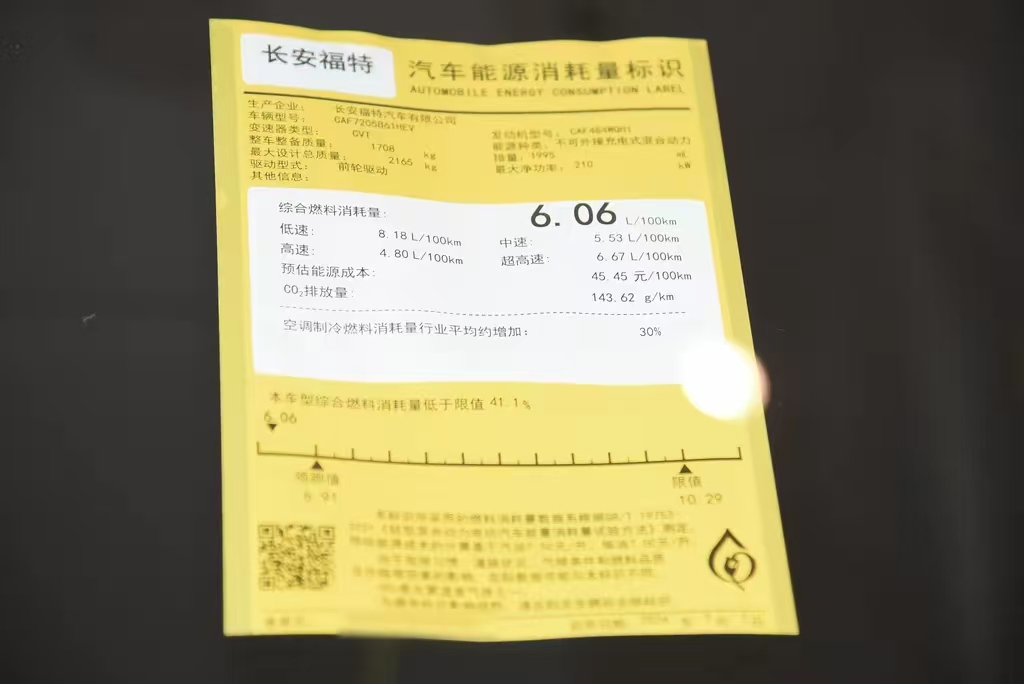 优秀的油耗表现,也得益于2.0T EcoBoost发动机、电机与E-CVT变速箱的匹配,加上0.25Cd的风阻设计,对燃油经济性有一定帮助。