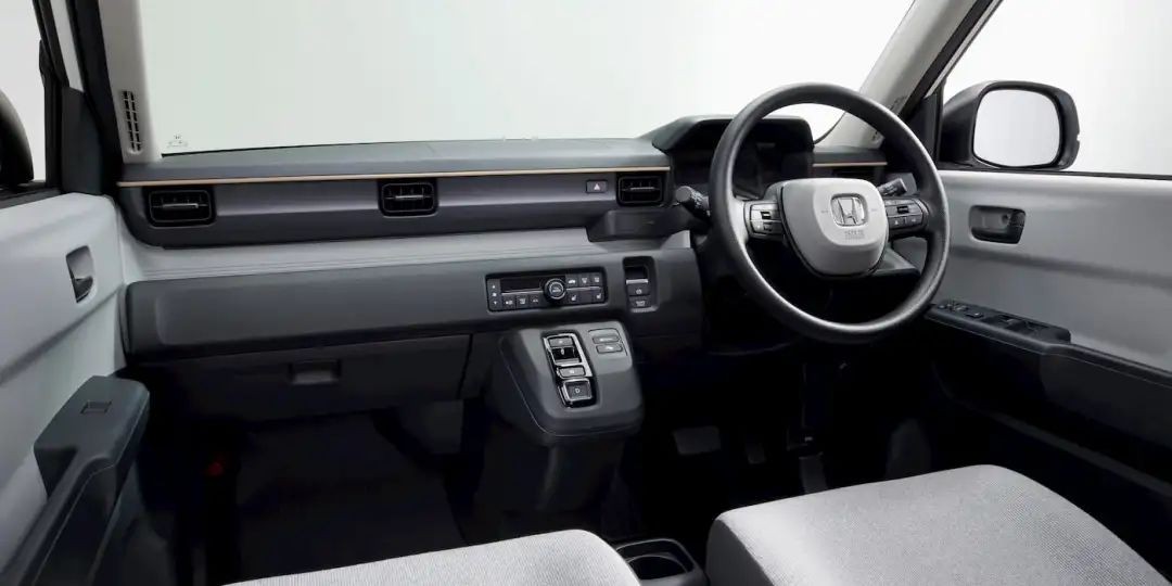进入车内,N‑ONE e设计较为简洁,与国内车企追求大尺寸屏幕不同,新车基础版并未提供中控屏,而是保留了实体按键与多媒体控制按钮。即便是配有9英寸Honda Connect屏幕的版本,依然保留了物理按键。看图片大家有没有一种感觉,本田的这台小车有种让车回归本身的“返璞归真”。