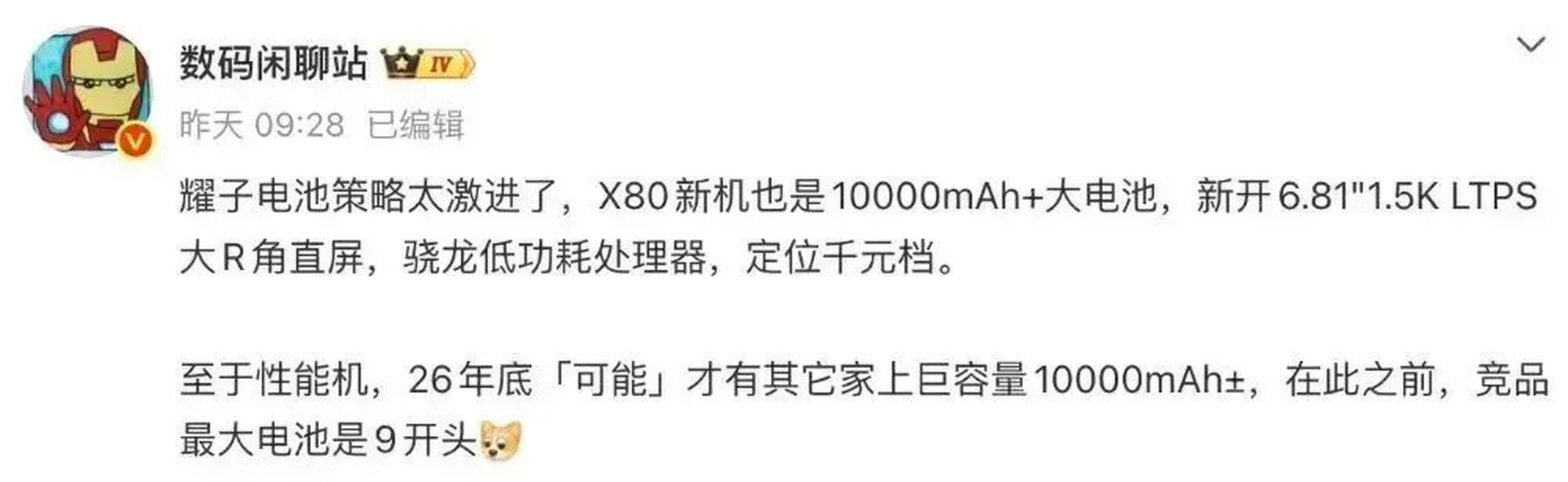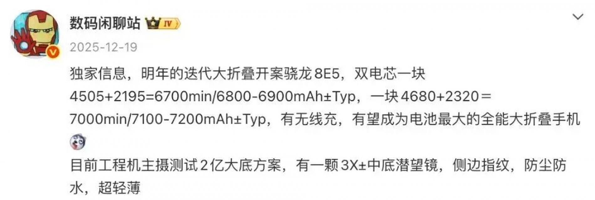 爆料猛料:7000mAh电池+骁龙8 Elite Gen5
