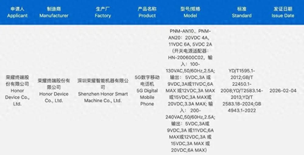 型号为PNM-AN10、PNM-AN20的荣耀新机刚通过3C认证,外界普遍推测这就是荣耀Magic V6折叠屏。认证信息显示,新机配备HN-200600C02适配器,支持120W有线快充,充电速度直接拉满。