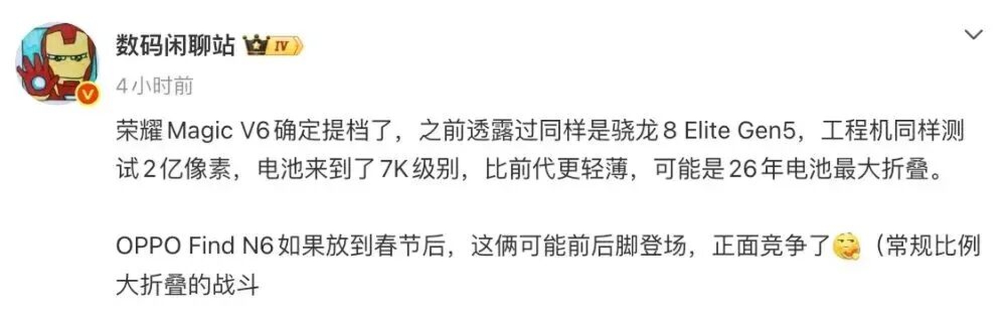 爆料还提到,OPPO Find N6若在春节后发布,两款折叠屏产品将正面交锋。这也预示着2026年折叠屏市场的竞争会从屏幕形态转向续航、性能等核心体验的比拼。