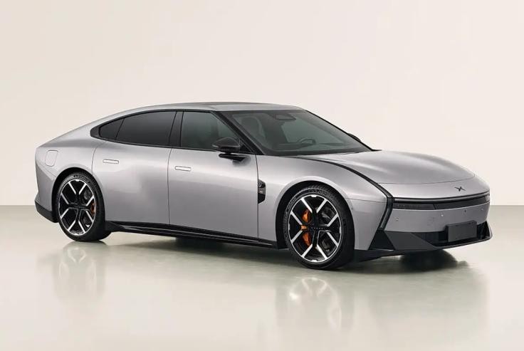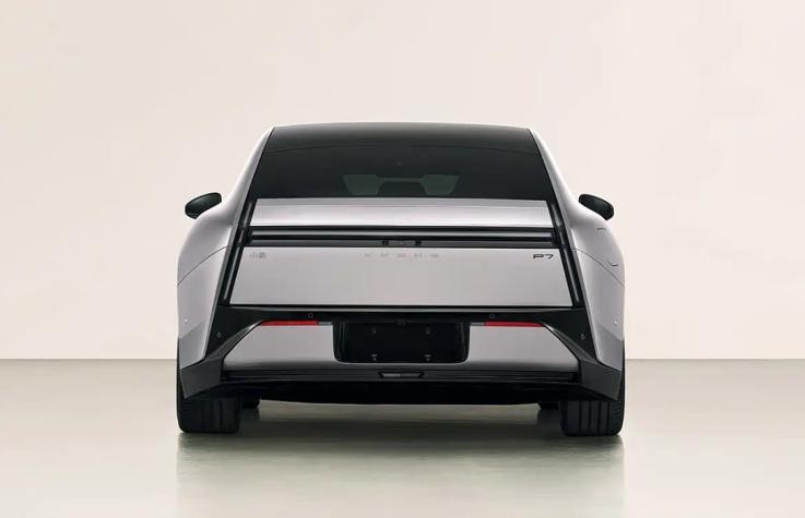 车身侧面的设计非常娴熟,全新小鹏P7保留现款车型的圆润型面结构,短前悬长轴的设计呈现出低趴动感的运动姿态,隐藏式A柱营造出悬浮式车顶效果,这也是近年来较为流行的设计形态。此外,为降低风阻系数,新车还采用了隐藏门把手和全新多幅式运动轮圈,搭配红色涂装刹车卡钳,视觉张力出众。