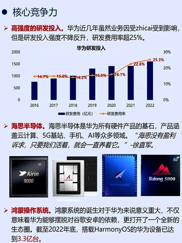 把华为拆开看,底层有芯片,网络有基站,终端有手机、电脑,系统有鸿蒙,云端有昇腾AI集群。
