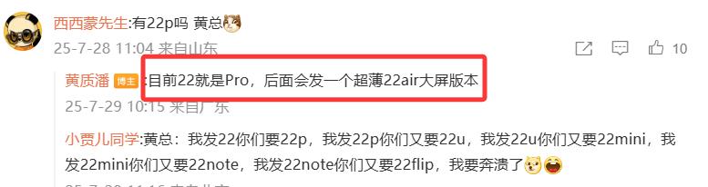 黄质潘在微博回应网友提问时明确表示:目前魅族22就是Pro版本,也就是只有魅族22,没有魅族22 Pro,两款产品精简为一款。