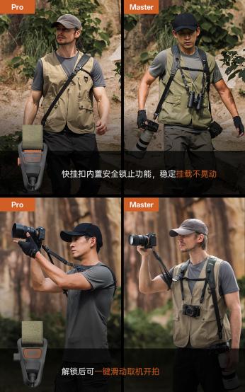 Master则致力于满足生态摄影、体育纪实、婚庆等多机协同或任务型拍摄场景下的严苛需求,两款新品旨在解决专业摄影师长期背负痛点,显著提升拍摄效率与佩戴舒适性。
