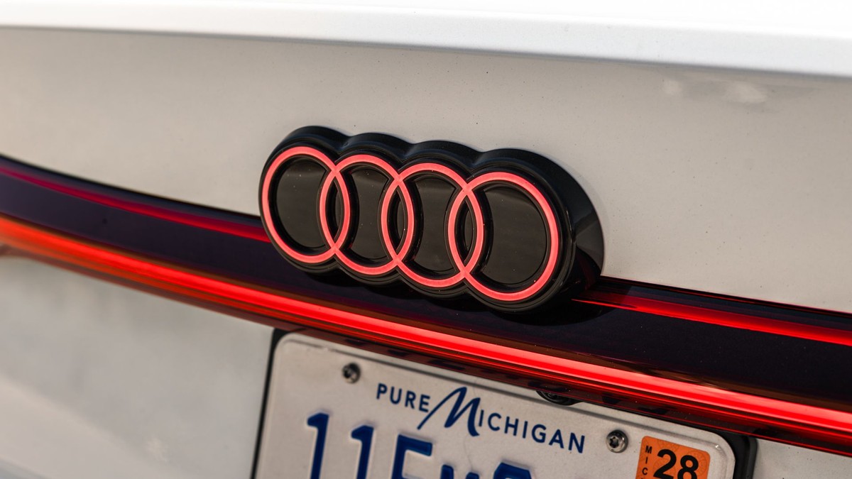 A6 e-tron 标配 20 英寸五叉式空气动力学设计轮毂,但您需要升级套件才能获得更小巧、更高效的 19 英寸五叉式轮毂。而要达到 EPA 预估的 392 英里(约 617 公里)的续航里程,您还需要添加包含其他功能的套件,而且费用高达 800 美元。发光的红色尾标是标配,我们对此的感受很复杂。这是一种趋势,在我们看来可能有些令人反感,但奥迪目前坚持使用这种尾标,并且与尾灯的红色混合在一起。我们不喜欢它,但也不讨厌它。
