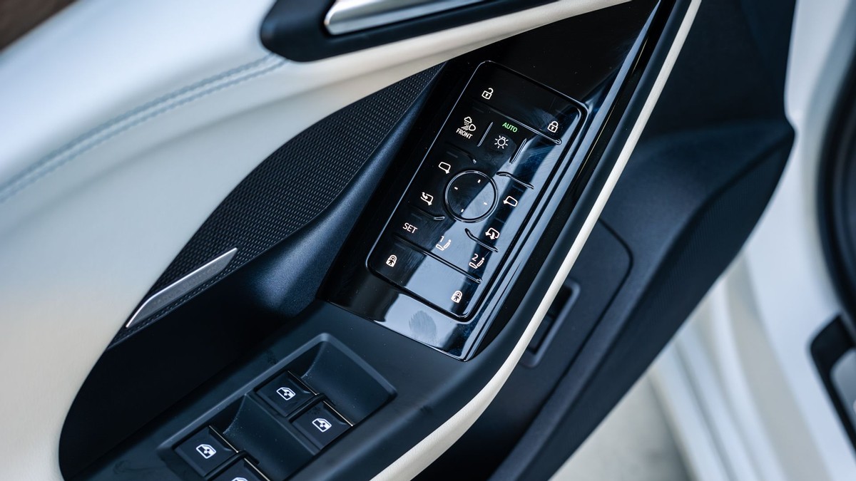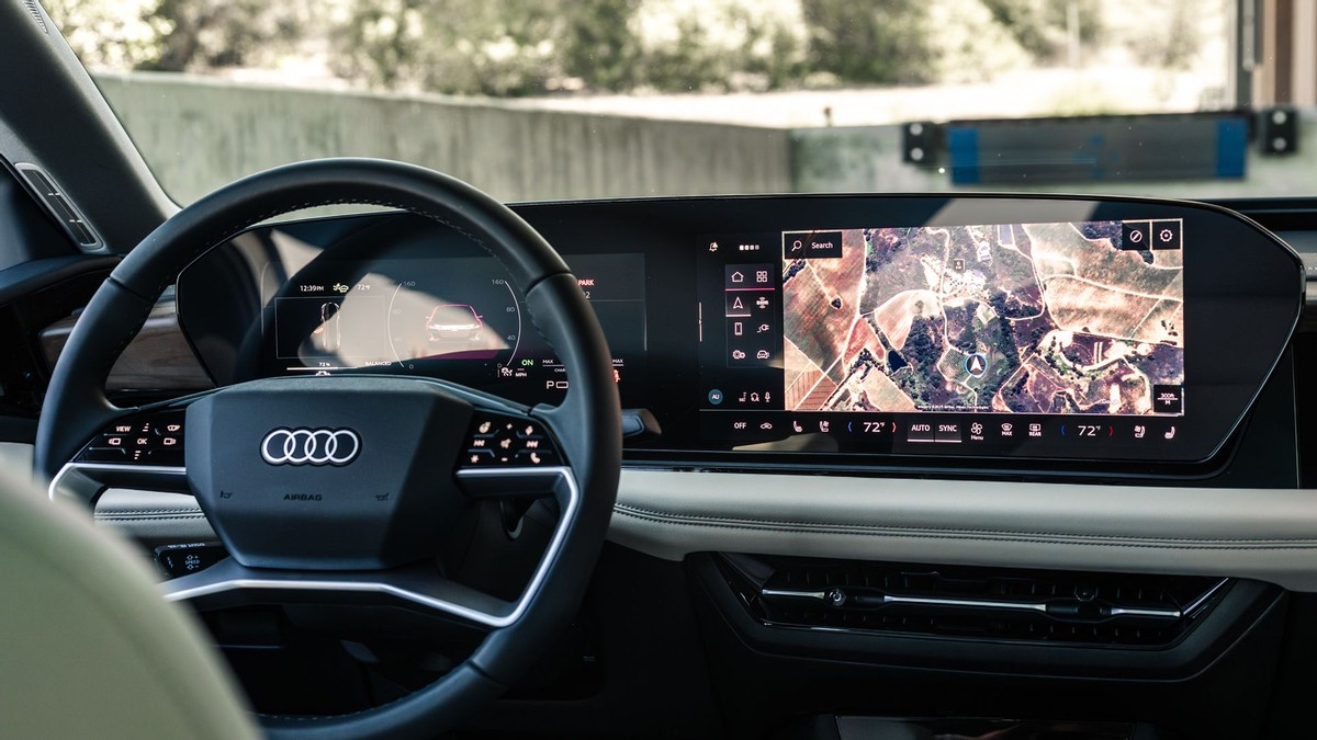 最大的亮点是标配的液晶玻璃全景天窗。我们体验过很多全景天窗,也住在沙漠里,但奥迪在这方面做得非常出色。之前,我们在e-tron GT上体验过同样的玻璃,它的隔热和防眩光效果非常好。它的亮点不仅在于可以电动切换透明和不透明,还可以像百叶窗一样分段调节。这听起来很新奇,但我们发现,根据一天中的不同时间进行调整后,效果非常好。