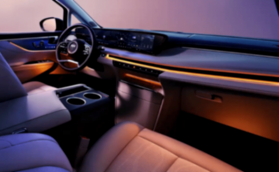 外观方面,新车采用艾维亚豪华美学设计,前脸采用家族化飞檐展翼设计,辨识度较高。大尺寸前格栅内部辅以点阵式镀铬元素,配合星环式1.9米贯穿式分体前大灯,升级支持7种智能照明模式。在车色方面,新车将采用全新“紫气东来”配色,根据官方透露其车漆采用8层涂装工艺,每平米使用超过100万颗彩色纳米级玻璃微珠,阳光照耀下色彩随光流转,视觉效果极佳。