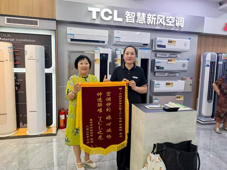 大庆的纪女士就是其中一位“被守护的人”。在装完空调第二天,她亲自送来锦旗:“没想到今年这个情况,我家的空调还能这么快送到和安装,听师傅说他们是从广东坐飞机过来支援的,在我家忙了3个多小时,全身都汗湿了!TCL空调真靠谱!”用户的理解与支持犹如天降甘霖,给忙活了大半月的工程师们带来了无限的抚慰。