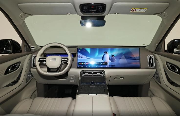 至于座舱,新车将采用主流的2+2+2六座布局,前排采用领克900同款一体式贯穿大屏,另借鉴了超窄仪表屏设计,搭配HUD抬头显示,辅以T字型环抱中控台设计和大面积的浅色软包材质和仿木纹饰板来看,座舱的氛围感颇为高级,卖相完全不逊于售价高达30-40万的竞品。此外,这套车机屏的显示细腻度也在线,UI布局合理便于操控,加之中央通道还提供了双手机无线充电、水晶多媒体旋钮、镀铬物理实体按键等功能布局,所以就座舱设计来说,没有明显的短板。