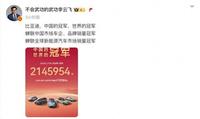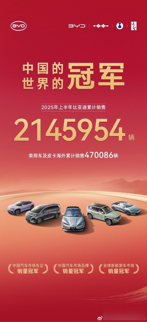比亚迪最近又刷屏了。他们家品牌总经理李云飞刚宣布,2025年上半年汽车卖了214.6万辆,这成绩不光在国内第一,在全球新能源车里也是销量冠军。更猛的是海外市场,半年卖了47万多辆,比去年全年销量还多,这速度把不少老牌车企都吓到了。