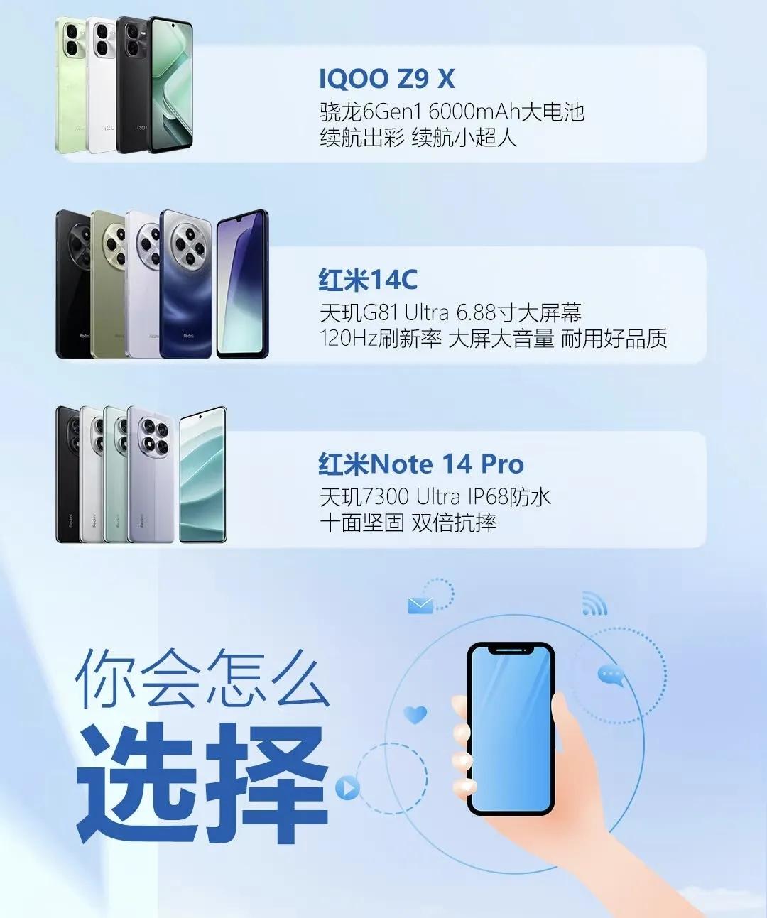 500-1500元档红米Note 14 Pro搭载天玑7300 Ultra芯片支持IP68防水iQOO Z9 X配备6000mAh大电池续航强劲。