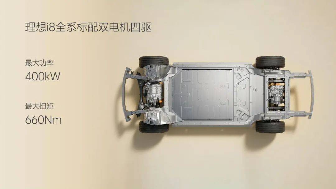 在动力和操控上,理想i8全系标配双腔空悬,具备四档高度可调,离地间隙20厘米。动力上,i8全系搭载双电机四驱系统,总功率400千瓦,零百加速4.5秒,最高车速180公里/小时。续航方面,标配5C三元锂电池,有90.1千瓦时和97.8千瓦时两种规格,CLTC续航分别为670公里和720公里,支持5C超充,10分钟可补能500公里。