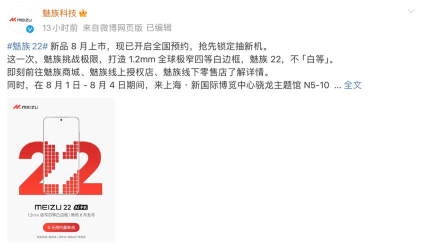也因此,就算魅族22姗姗来迟,也仍有许多网友愿意为这份情怀继续等待。如今终于传来了好消息,魅族官方已经确认魅族22将于8月发布,目前官网也开启了0元预约通道,相关的产品信息在网上也有了更多的曝光。