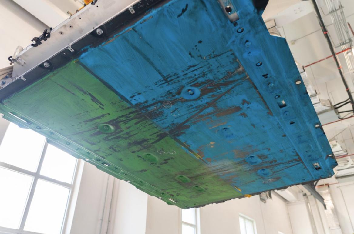 在电池安全方面,奥迪更是展现出与新造车不同的一面。在Q6L e-tron战损电池测试环节中,模拟了事故车辆受到底部撞击、二次刮底、高空跌落叠加的极限工况,战损电池经历了30毫米钢头多次撞击底部三处风险点、电池包刮底碰撞被侵入30mm、5m高空跌落等一系列极端摧残。在全铝超厚电池框架、同级唯一9层玻璃钢纤维下护板、内部三道加固横梁、100%覆盖的电池安装区底板等物理结构的保护下,战损版电池通过上述全部严苛测试。