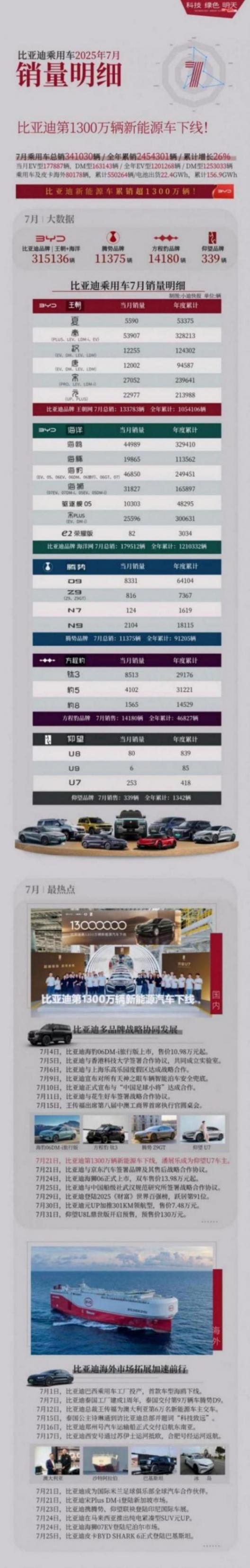 8 月 1 日消息,在官方信息披露后不久,@小迪快报 公布了比亚迪旗下各车型 7 月的销量明细情况。