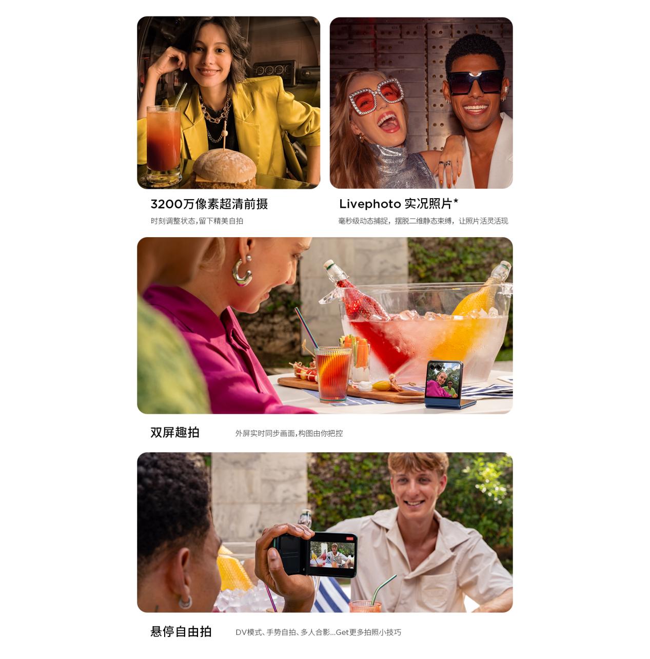 影像系统采用5000万像素OIS主摄+1300万像素超广角组合,支持AI合影(自动识别闭眼/表情不佳)、Live Photo动态照片等创新功能,配合悬停拍摄模式,让用户轻松驾驭社交平台爆款创作。