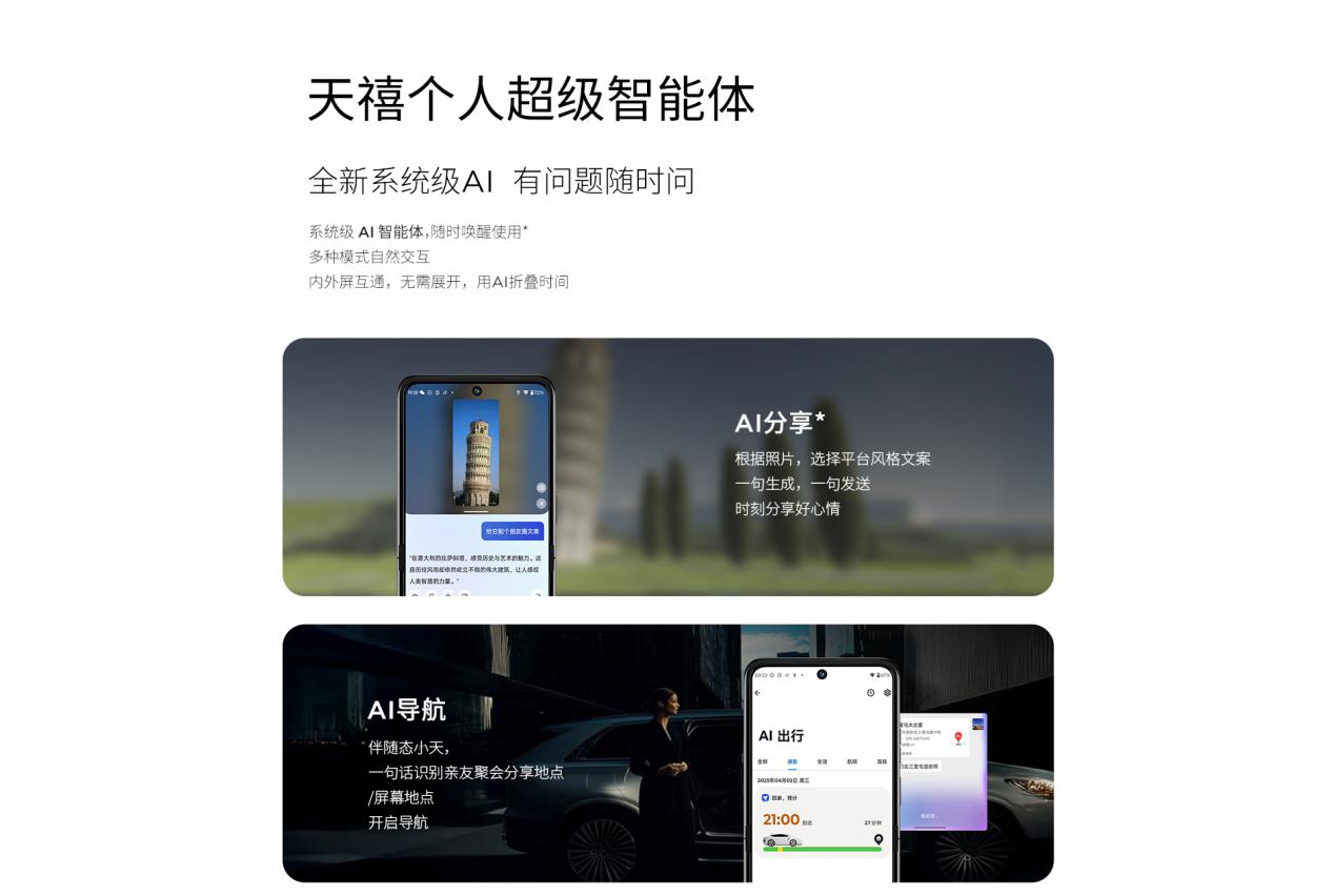 3.6英寸全功能AI外屏支持1700nit峰值亮度与90Hz刷新率,可直接运行上千款主流应用,从快速回复消息到外屏自拍预览,让折叠态交互效率提升40%。