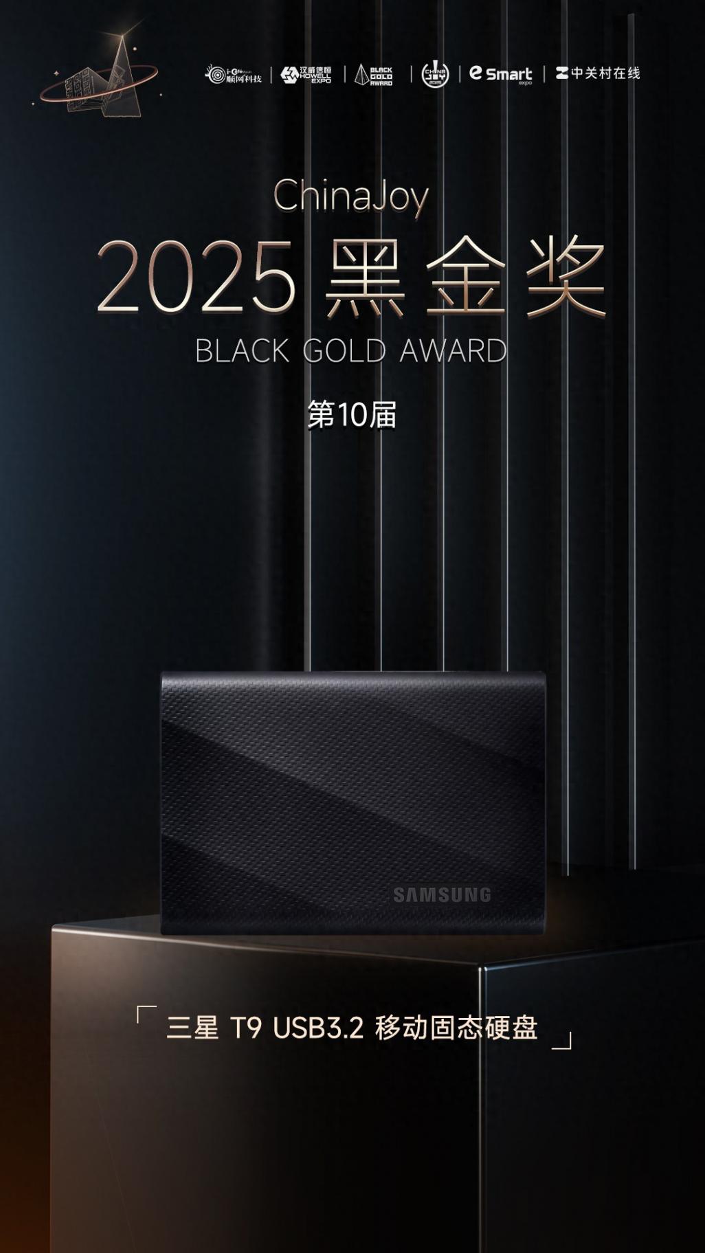 】2025年8月2日,第十届ChinaJoy黑金奖(BlackGold AWARD)正式揭晓。三星品牌存储旗下年度旗舰产品三星T9 USB3.2移动固态硬盘,凭借前沿的性能、独特的设计和优秀的防护能力,荣获2025年度黑金奖。