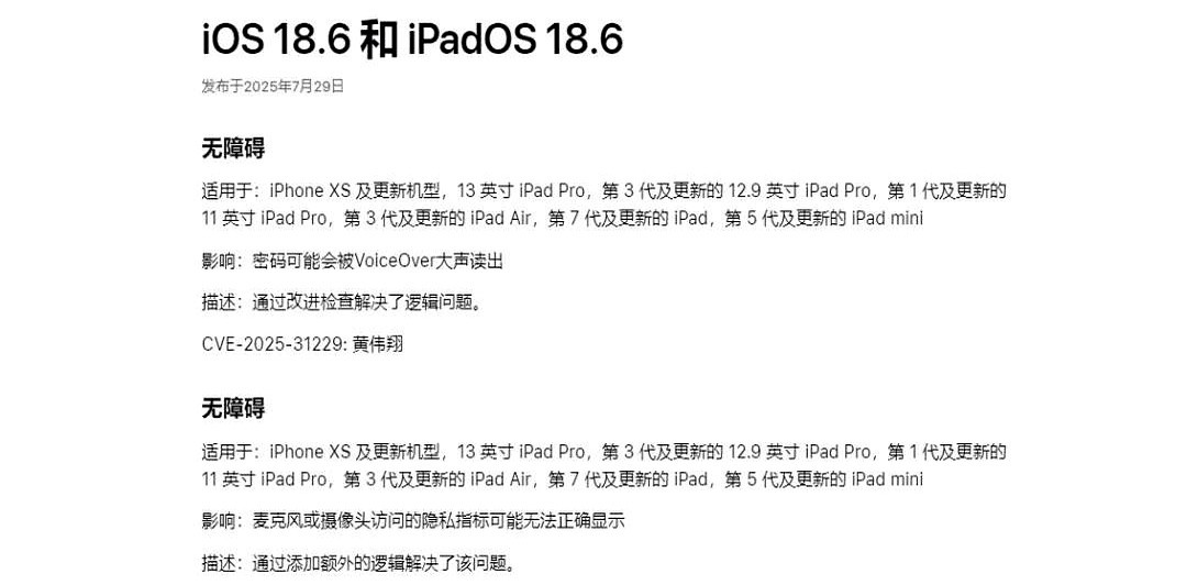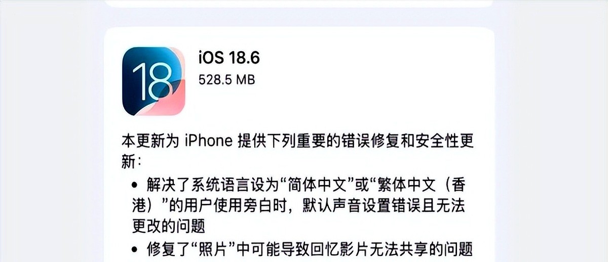 凌晨两点半摸黑刷微博,苹果冷不丁推了iOS 18.6正式版。
