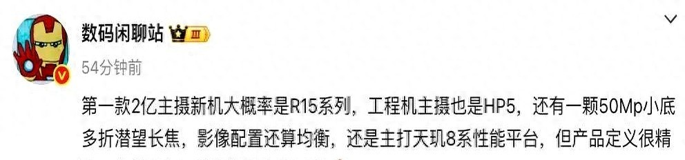 这边刚花四千多买的Reno14 Pro还没捂热乎,那边数码博主就放料说Reno15要上2亿像素主摄和双潜望镜头,连明年要发的Find X9 Ultra参数都提前剧透了。