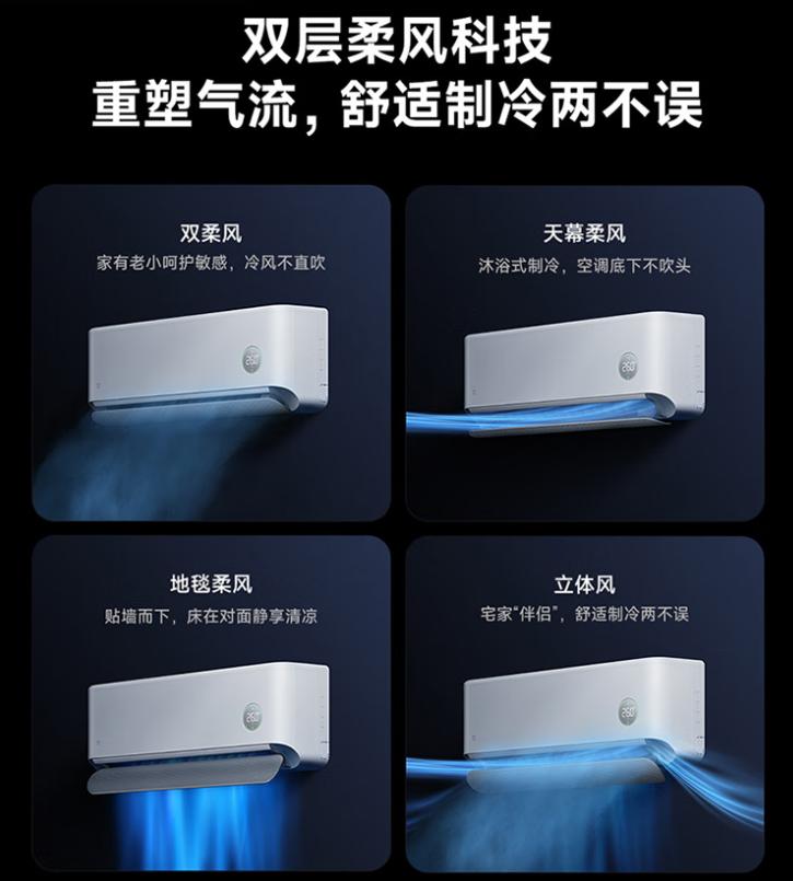 这空调的核心卖点之一就是这个“双层柔风科技”。它不是什么复杂的电子技术,而是实实在在的物理设计。通过特殊的风道和导风板结构,把强劲的冷风“打散”、“揉碎”。