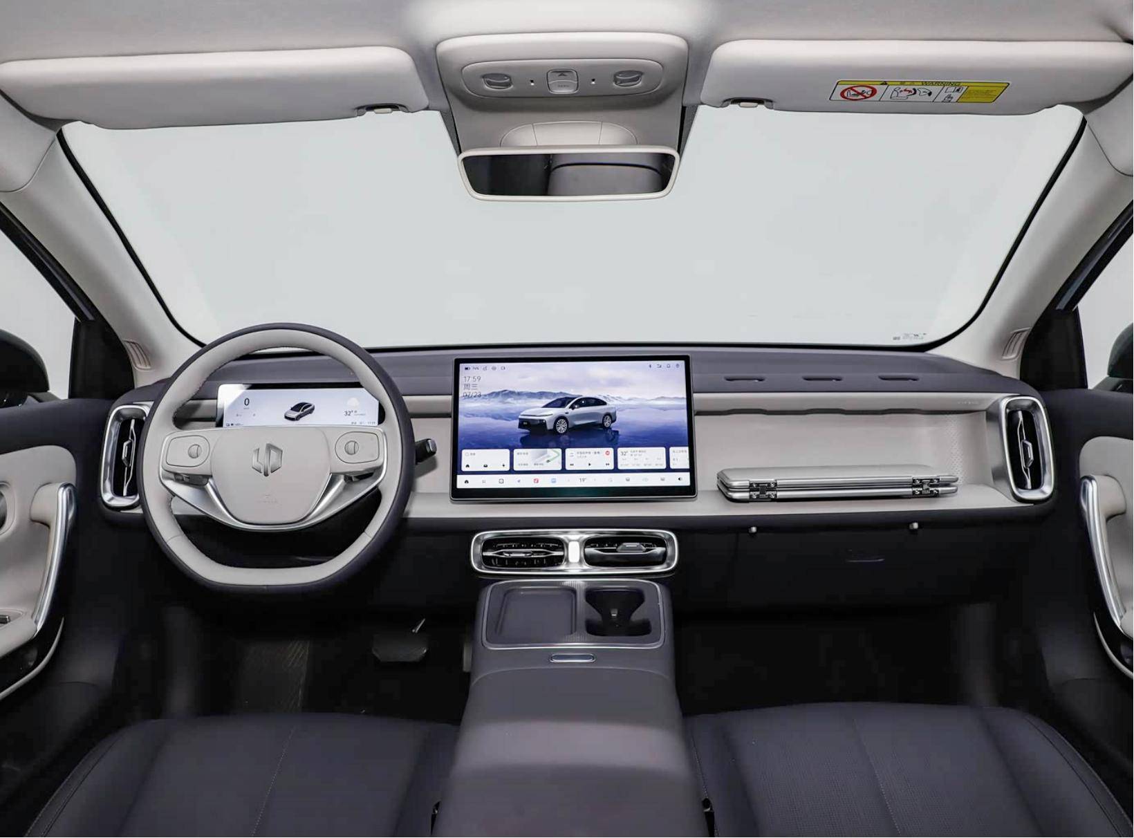 零跑B01内饰简洁明快,中控屏尺寸不小达到14.6英寸,驾驶者面前还有8.8英寸全液晶数字仪表屏,内饰采用大量软包工艺,而且都通过了欧盟OEKO-TEX STANDARD 100母婴级认证。值得注意的是,车机芯片根据配置不同分为两种,中低配为骁龙8155,高配为8295P,内置Leapmotor OS 4.0 Plus交互系统和双AI语音大模型,支持DeepSeek+通义千问。