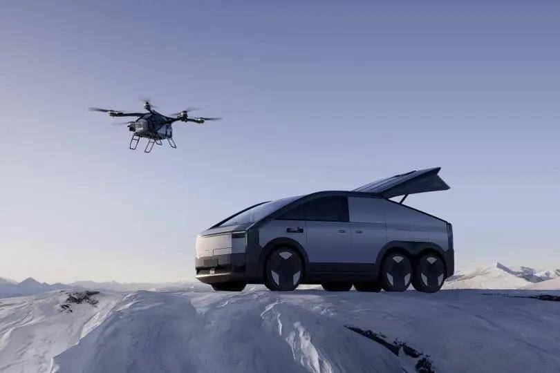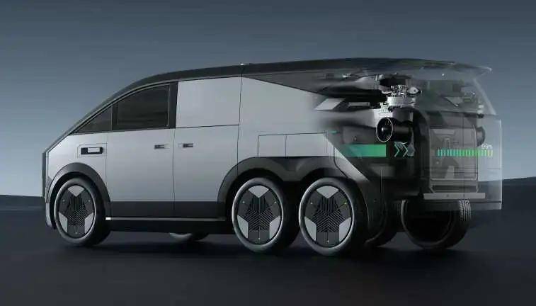 再来看看配置,“陆地航母”的陆行“母舰”搭载800V碳化硅增程动力,综合续航超1000km。另外,陆行“母舰”还是一个“移动充电宝”,并且是快充的那种,行驶中、停车时均可以给飞行器补能,满油满电可实现6次飞行。