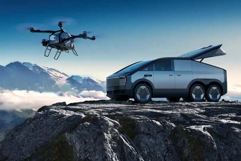 小鹏汇天的设计思路则不一样,它带来了全球首款量产的分体式飞行汽车——“陆地航母”,前面我们也提到了,这款车一共分为两部分。