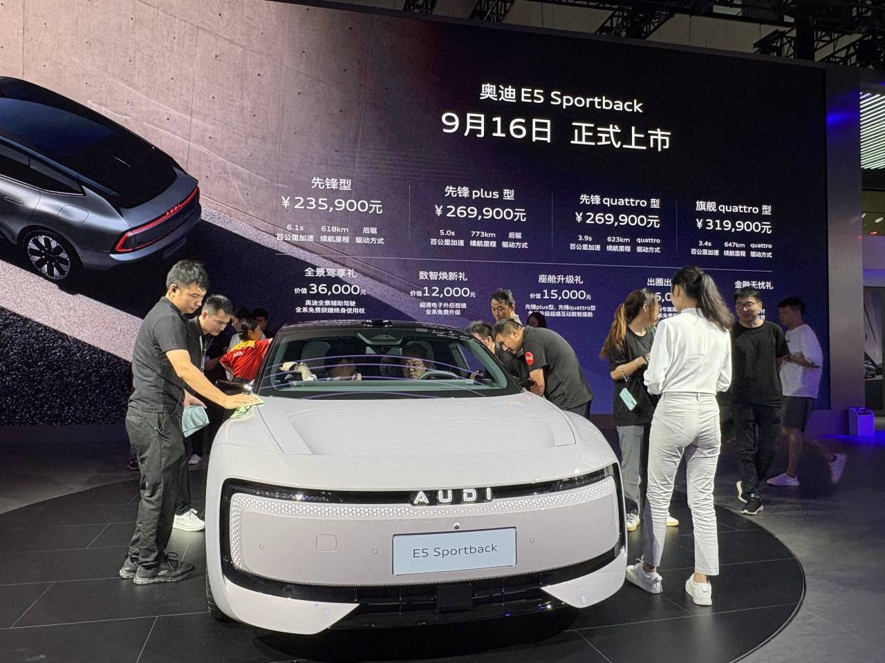上汽奥迪和一汽奥迪分别参展,上汽奥迪主打最新上市的奥迪E5 sportback;一汽奥迪则带来刚刚发布的A5L。