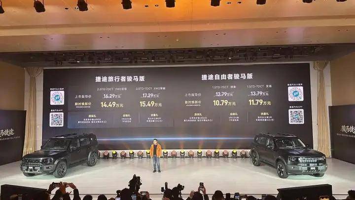 3月11日,捷途旅行者骏马版与自由者骏马版正式上市,其中,捷途旅行者骏马版推出2个版型,官方指导价16.29万元-17.29万元,购车即享3重上市权益,限时焕新价14.49万元-15.49万元。捷途自由者骏马版也是2个版型,官方指导价12.79万元-13.79万元,购车即享3重上市权益,限时焕新价10.79万元-11.79万元。