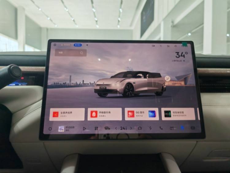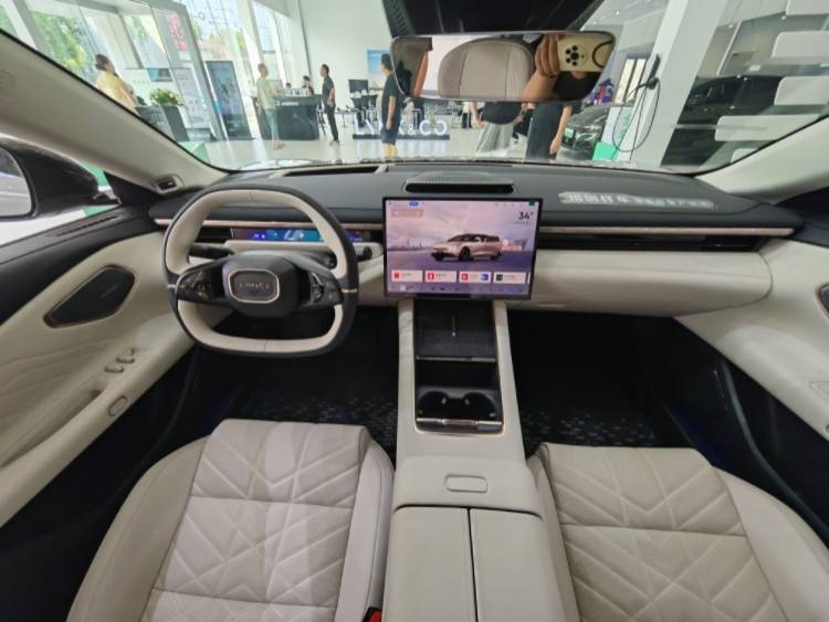 内饰部分采用简约科技风,配备悬浮式中控屏、嵌入式窄长条液晶仪表和HUD抬头显示,营造出较强的科技氛围,搭配两辐式双色方向盘和电子怀挡。此外,中控台上提供有贯穿式的256色AI鎏光氛围灯,空调出风口与音响采用一体化设计,形成启幕升降式出风音响。