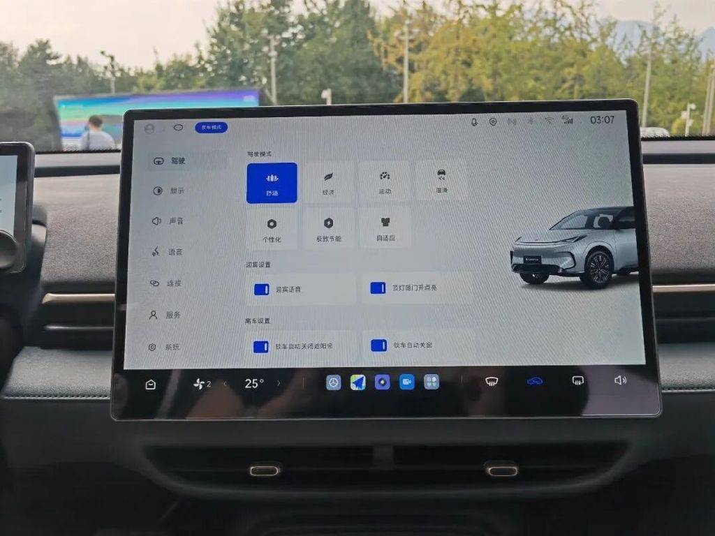 在动力、续航、充电效率和能耗方面也有不错表现。动力方面,搭载前置单电机,拥有高低功率两种电机配置,最大功率分别为95kW和70kW,完全满足城市通勤和高速行驶的需求。同时,还提供7种驾驶模式,包括舒适、经济、运动、个性化、湿滑路面、极致节能和自适应模式。其中自适应模式可根据驾驶习惯自动调节动力输出与能量回收强度。