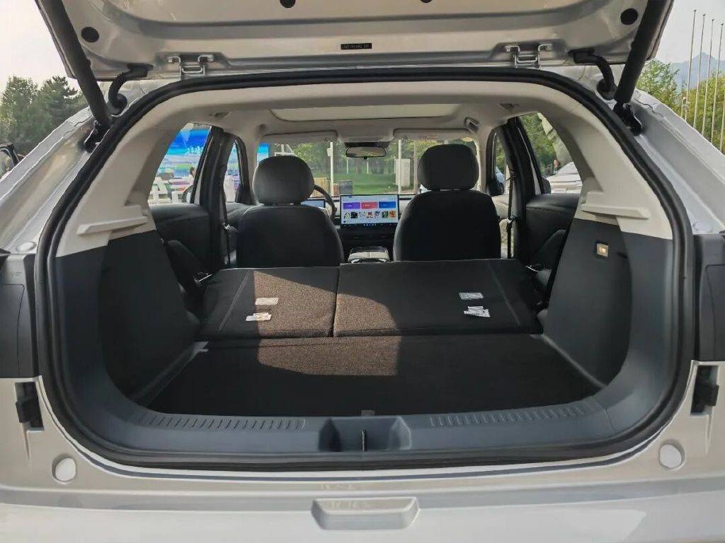 同时,还有丰富实用的储物空间,其后备厢常规容积达到459L,且后排座椅支持4/6比例放倒后,可进一步扩展至1352L,无论是日常购物还是周末露营,装载能力都更具优势。更特别的是,其隔板下方还有一个74L的下沉式隐藏储物空间,便于干湿物品分离存放。全车设计了多达32处的储物格,包括B柱上的隐藏挂钩等,巧妙照顾到各种零碎物品的收纳。