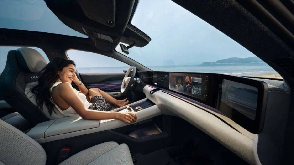 内饰方面,最醒目的是59英寸沉浸式全景屏,包括了电子外后视镜、仪表屏、中控屏和副驾娱乐屏,屏幕分区合理,驾驶员一侧显示导航和车辆信息,副驾一侧则可播放视频或控制娱乐功能。同时,奥迪E5 Sportback还搭载革命性的AUDI OS操作系统,基于高通骁龙8295车规级芯片(5纳米制程工艺,30TOPS算力)的强大性能,交互逻辑贴近中国用户习惯。此外,还实现了苹果、华为、OPPO、小米、VIVO等主流手机品牌的适配,确保手车无缝衔接。辅助驾驶方面,配备了27个感知硬件,包括1个激光雷达、3个长距毫米波雷达、11个摄像头和12个超声波传感器,再加上英伟达Orin-X芯片的强大算力,可轻松应对城市道路、高速公路及自动泊车等多种场景。