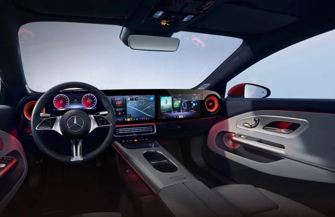 全新纯电CLA的内饰带来了焕然一新的豪华体验,其内饰遵循化繁为简、回归本质的原则,弱化了基本结构,更加聚焦标志性的高科技元素。这种极致的简化体现了内饰的前卫风格。控制元素的设计灵感来源于消费电子领域的现代产品设计。悬浮式设计的MBUX超级屏是内饰的绝对焦点。3块屏幕由一整块封闭的玻璃覆盖,横跨整个仪表台,将美学、科技和舒适提升到全新高度。