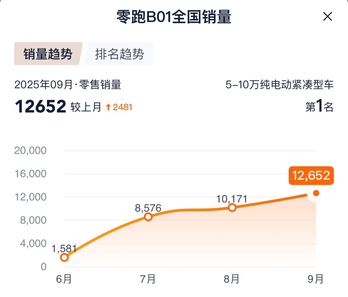 作为品牌B系列的又一大作,零跑B01以“9月单月销量达1.26万辆”的成绩,成功蝉联紧凑型车销量冠军。