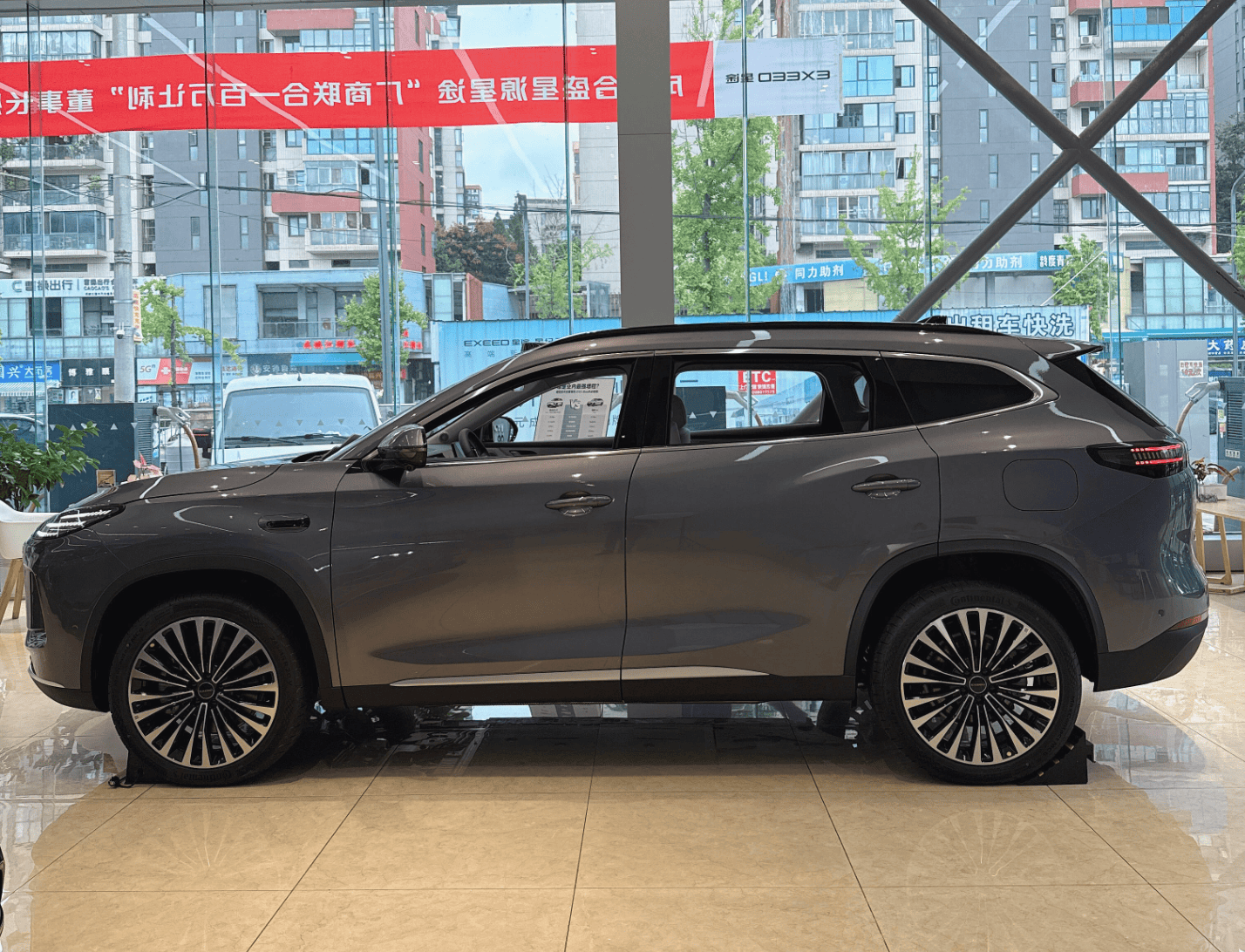 车身尺寸长宽高分别为4780/1890/1725mm,轴距2800mm,作为参考,宋L DM-i的长宽高为4780/1898/1670mm,轴距2782mm。车身侧面呈现出较为饱满的动感姿态,而上扬的肩线又勾勒出肌肉力量感。贯穿式尾灯内辅以点阵式灯组,再配合20英寸密幅式轮毂,又带来了豪华精致气息。简洁、圆润的尾部造型也显得很有敦实感,熏黑后包围处的扩散器,则继续烘托运动气质。