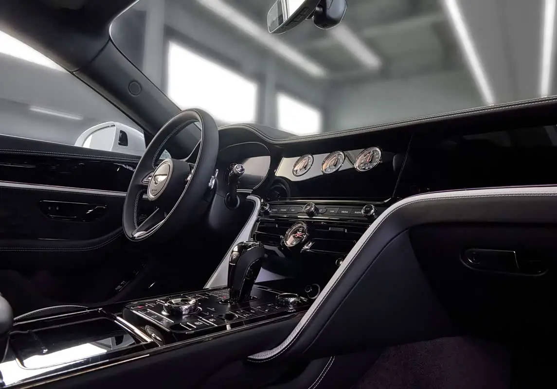 内饰部分,整车以钢琴黑饰板为主基调,高亮的漆面质感营造出浓郁的典雅氛围。精致的机械仪表与按键巧妙点缀其间,将顶级工艺与艺术美学完美融合,碰撞出独特的跨界魅力。