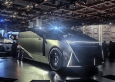 同样关注度极高的就是“LS概念车”,该车虽然为商务车的车身形态,但却采用了6个车轮的结构,前面2个车轮较大,后面4个车轮较小。