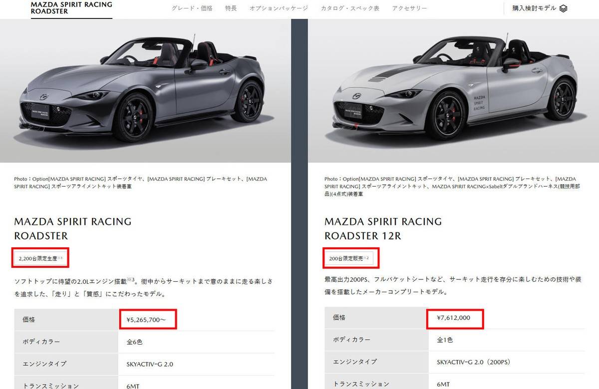 近日,马自达官方发布了MX-5 Spirit Racing Roadster 12R和基础版的Spirit Racing Roadster车型。作为由马自达新成立性能部门Mazda Spirit Racing所推出的首款车型,Spirit Racing Roadster起售价为5,265,700日元(约合人民币24.6万元),限量2,200台,而Spirit Racing Roadster 12R则限量200台,起售价为7,612,000日元(约合人民币35.6万元)。