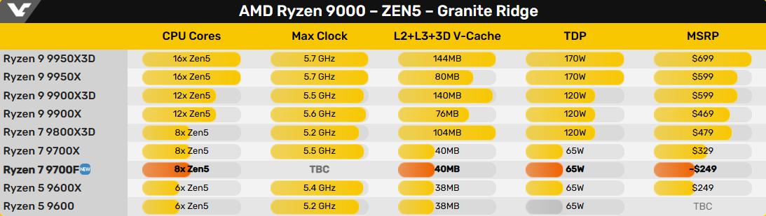 从目前已知的参数来看,除了不集成核显之外,Ryzen 7 9700F和Ryzen 7 9700X整体上没有区别,这是个好消息。