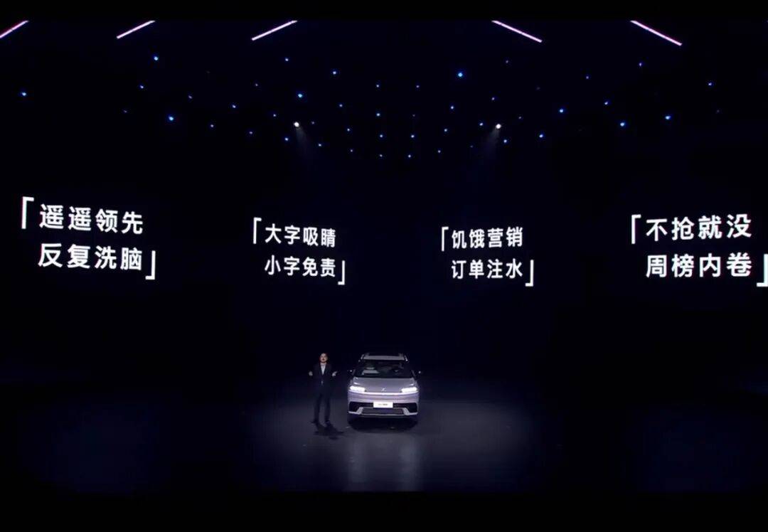 紧接着10月29日,北京现代副总经理周斌在当天EO羿欧的上市发布会上,怒批了众多汽车圈的营销乱象。“这段时间有不少汽车厂家的营销有点剑走偏锋,有的车企靠‘遥遥领先’反复洗脑,有的玩大字吸睛、小字免责的文字游戏,还有的拿饥饿营销加订单注水制造‘不抢就没有’的焦虑感,或许有些友商陷在了销量周榜的内卷里,反而丢失了最核心的本质。”周斌说道。