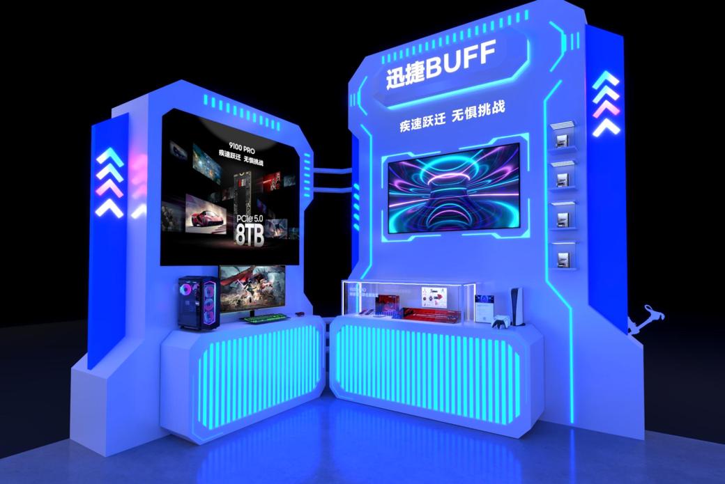 “迅捷BUFF”体验区以三星9100 PRO固态硬盘为驱动,满血PCIe5.0性能+超大容量,通过《刺客信条:影》和《索尼克x夏特:世代重启》游戏,让观众们感受它为高能游戏PC和索尼PS5主机带来的迅捷加成。