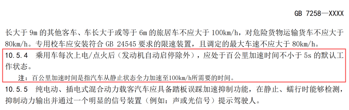 现在公安部也出手了。在公安部最新《机动车运行安全技术条件》征求意见稿中,赫然有一条:乘用车每次启动后应处于百公里加速时间不少于5秒的默认状态。
