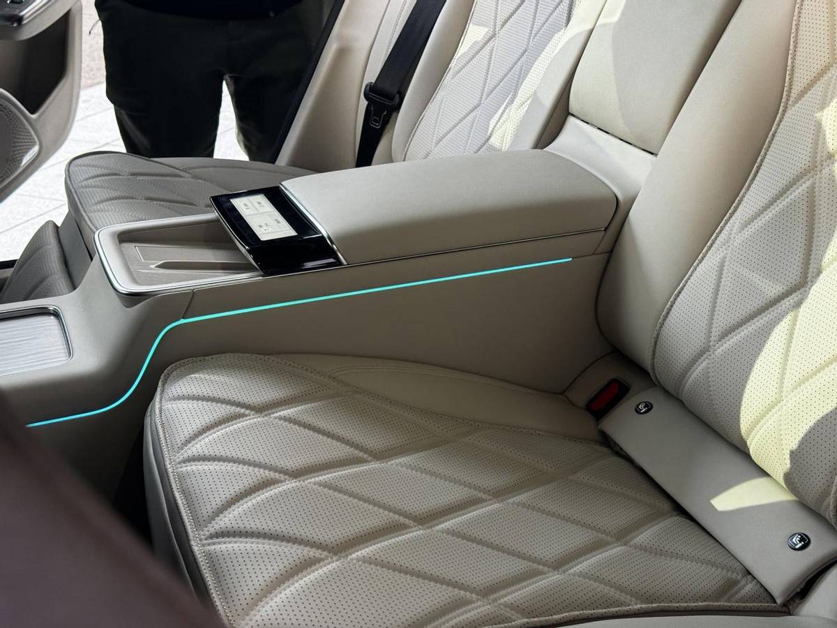第一层是肉眼可见的豪华,即充沛的动力,丰富的配置、扎实的用料等。风云A9L光辉(四驱)可以说武装到了牙齿,能给的几乎都给了,可以用的几乎都用了。例如鲲鹏超能电混CDM 6.0系统、前双叉臂与后高阶五连杆结构、座椅迈巴赫同款双绗缝工艺,支持24.5°-32°电动调节,配备加热、通风与按摩功能,智控中岛集成13.7L智能冷暖冰箱,隐藏式桌板等兼顾商务接待的配置,又例如漆面工艺、扎实的底盘悬架用料等,总之就是怎样贵就按怎样来。