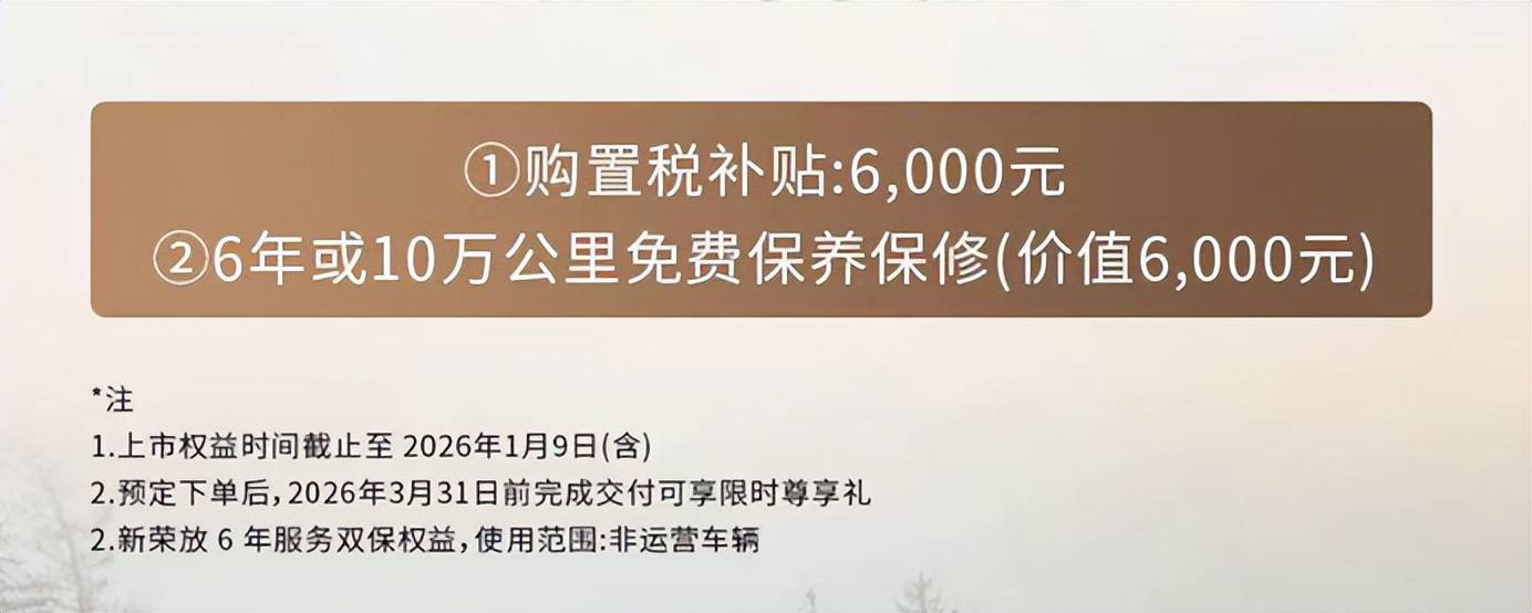 购车权益方面,即日起至2026年1月9日,购车可享现金直减18000元(相对于指导价)、购置税补贴6000元,以及价值6000元的“6年双保无忧”服务(涵盖6年或10万公里免费保养保修)。部分地区消费者还可叠加享受国家新能源汽车置换补贴及地方购车补贴。