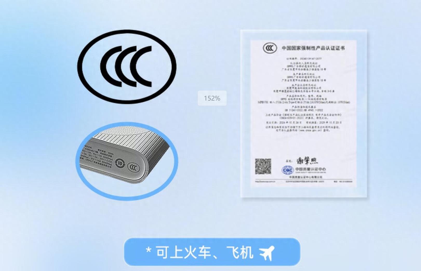 近几年来,移动电源等锂电池产品发生多起起火冒烟事件,国家市场监管总局严厉查处,撤销或暂停了多个充电宝及电池芯厂家3C认证。OPPO作为知名科技公司,其消费者业务除了覆盖手机、平板等终端设备及耳机手表等智能穿戴设备,还推出了充电宝等配件产品。其在售充电宝均使用符合多个安全标准的电芯,通过CCC认证,让消费者用得安心。