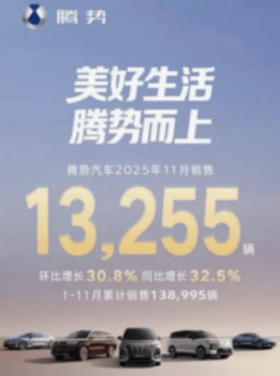 环比增长 30.8%,同比增长 32.5%!这是腾势在11月份亮出的成绩单,单就整体双降的11月乘用车整体市场看当然算的亮眼。